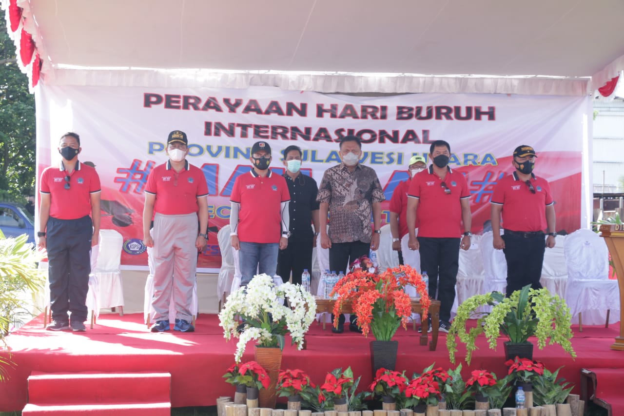 Kegiatan diawali dengan laporan Ketua Panitia, penyampaian aspirasi dan sikap oleh perwakilan beberapa konfederasi buruh, serta penyerahan naskah aspirasi kepada Gubernur Sulut Olly Dondokambey.
