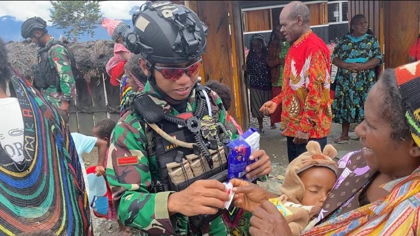 Adalah anggota dari Pos Puncak Senyum yang berjumlah 19 orang dibawah pimpinan Serka Afdal melaksanakan kegiatan pengamanan dan ibadah Minggu bersama masyarakat Distrik Irimuli di Gereja Bukit Sion. Seperti biasanya, anggota satgas dan warga mengikuti rangkaian ibadah dengan khusyuk.