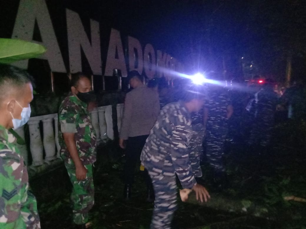 Setibanya di tempat kejadian, Tim Siaga bencana Lantamal VIII bersama dengan personil dari Kodim 1309/Manado dan Satbrimob Polda Sulut serta masyarakat sekitar, langsung membersihkan matrial berupa pohon-pohon yang tumbang dan tumpukan tanah longsor, dibantu 1 unit alat berat dari BPBD Sulut.