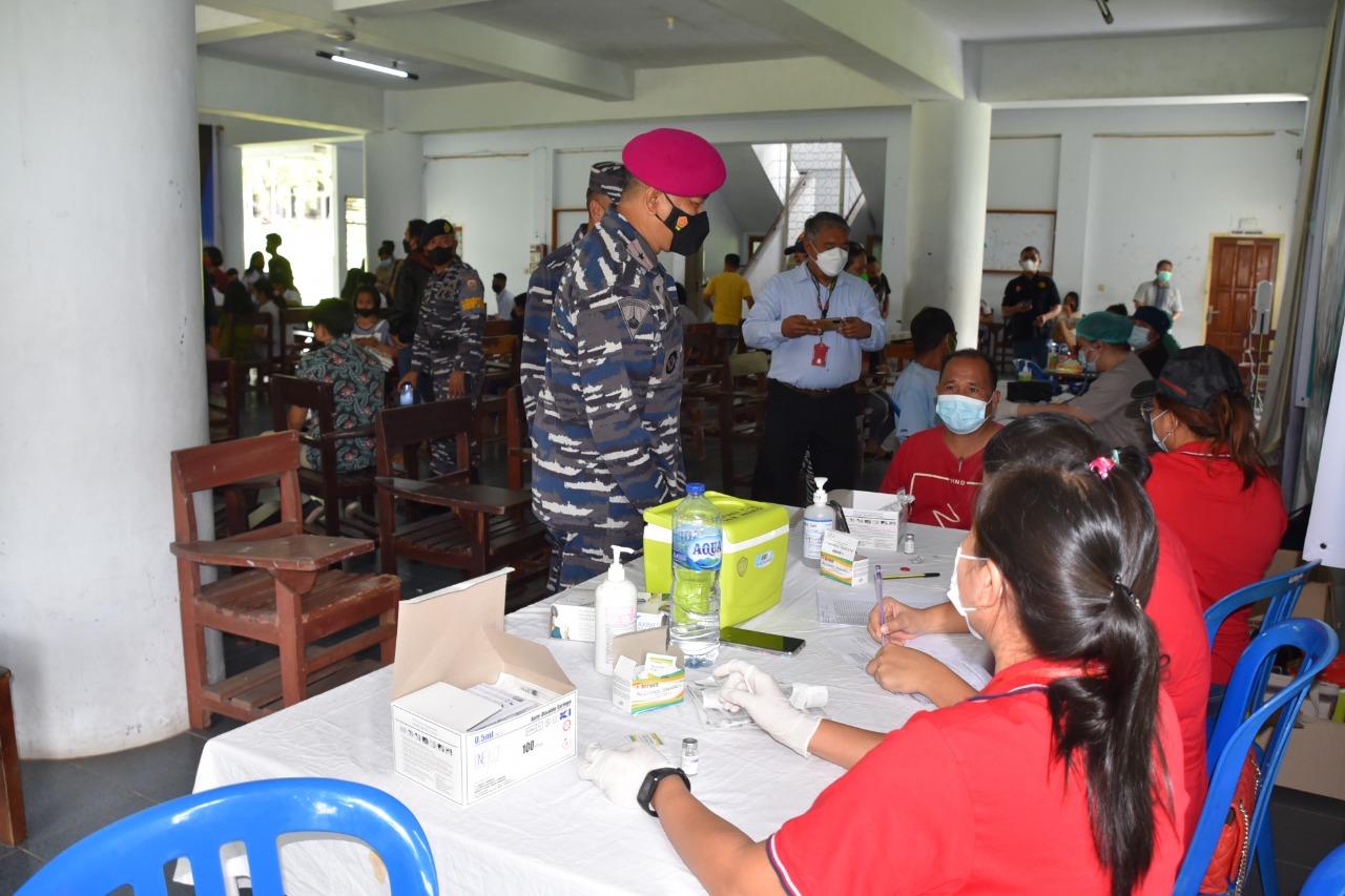 Pada serbuan vaksinasi maritim kali ini Lantamal VIII mengerahkan tiga dokter, vaksinator dan puluhan tenaga kesehatan dari Dinas Kesehatan Lantamal VIII dengan target 500 dosis jenis Sinovac dan 100 dosis jenis Astrazeneca.