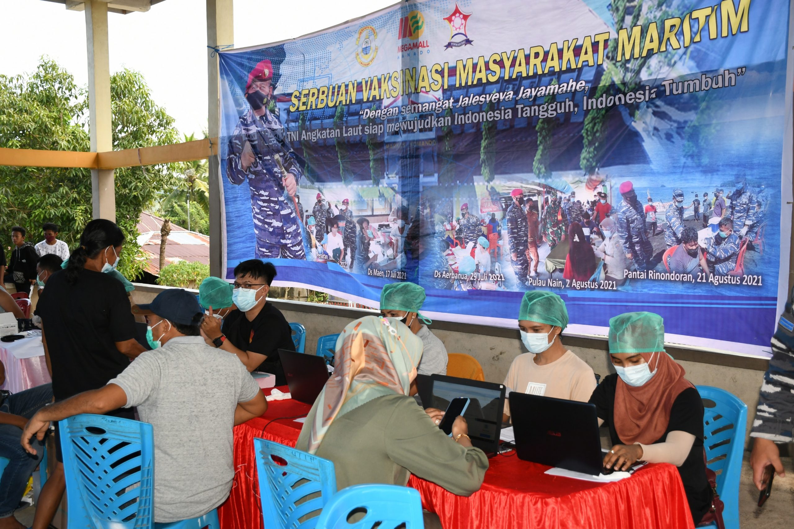 Pada kegiatan tersebut Lantamal VIII menyiapkan 700 dosis vaksin terdiri dari 300 dosis jenis Sinovac dan 400 dosis jenis Astra Zeneca serta mengerahkan dokter, tenaga kesehatan dan vaksinator dari Dinas Kesehatan Lantamal VIII dibantu Puskesmas Mubune Likupang serta didukung Bintara Pembina Potensi Maritim (Babinpotmar) wilayah Likupang.