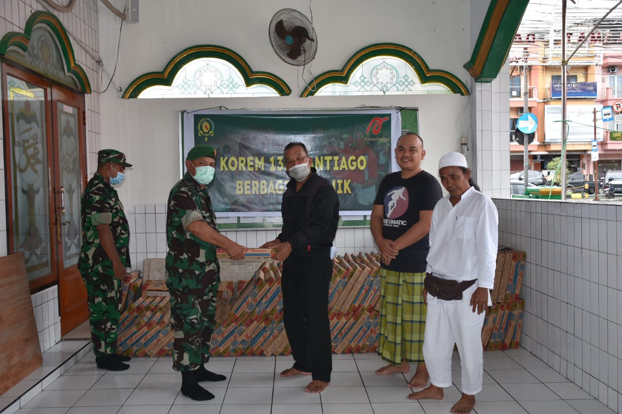 Bantuan 200 dus keramik oleh Danrem 131/Santiago kepada Mesjid Firdaus Sario diserahkan oleh Pasi Bhakti Staf Teritorial Mayor Inf Arifin Honggul dan diterima langsung oleh Bendahara Masjid Firdaus Yahya Karinda selaku perwakilan penerimaan bantuan.