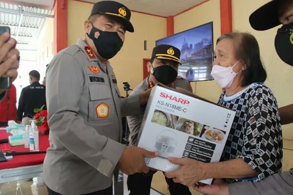 MANADO – LPKRINEWS.ID — Kapolda Sulawesi Utara Irjen Pol Mulyatno memberikan apresiasi terhadap para lanjut usia (lansia) yang sangat antusias mengikuti program vaksinasi, yang digelar Polda Sulut di Aula Segitiga Pemda Ranomut, Manado, Kamis (7/4/2022).