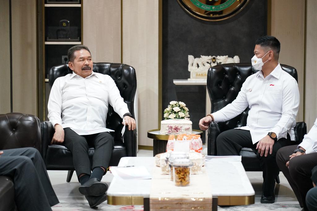 Lpkrinews.id-Jakarta-Bertempat di Lantai 7 Gedung Utama Kejaksaan Agung, Jaksa Agung ST Burhanuddin didampingi Jaksa Agung Muda Intelijen Amir Yanto, Asisten Umum Jaksa Agung Herry Hermanus Horo, Asisten Khusus Jaksa Agung Sri Kuncoro, dan Kepala Pusat Penerangan Hukum Kejaksaan Agung Ketut Sumedana menerima audiensi dari Ketua Umum Komite Olimpiade Indonesia Raja Sapta Oktohari, Plt. Sekretaris Jenderal Harry Warganegara, Wakil Sekretaris Jenderal 3 Josephine Tampubolon, Asisten Administrasi dan Keuangan AWBG Brigjen Purn Listyanto, dan Sekretaris Jenderal AWBG Zaenal Asikin.