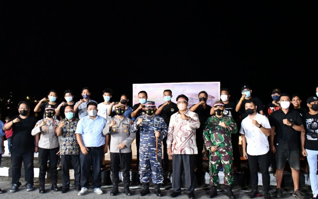 MANADO – LPKRInews.id – Masyarakat yang berada di perbatasan Kepulauan Sangihe bersama Forum Komunikasi Pimpinan Daerah (Forkopimda) Kabupaten Kapulauan Sangihe menyalakan 1000 lilin di Jalan Boelevard Kelurahan Apeng Sembeka, Tahuna, Kabupaten Sangihe. Sabtu (8/5).