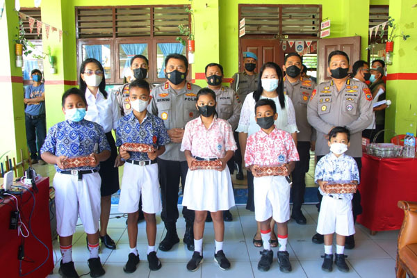 Sementara itu sesaat usai mengikuti video conference serta meninjau vaksinasi, Irjen Pol Mulyatno bersama beberapa Pejabat Utama dan Kapolresta Manado juga memberikan bingkisan kepada anak-anak peserta vaksinasi.