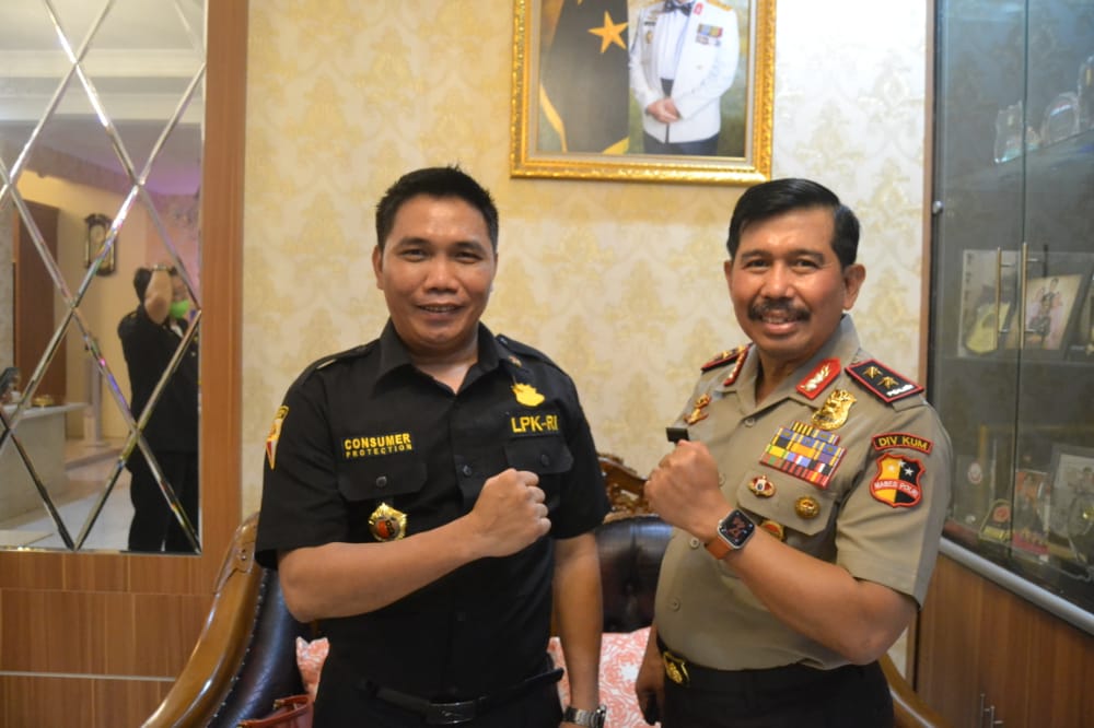 JAKARTA – LPKRINEWS.ID – Ketua Umum Lembaga Perlindungan Konsumen Republik Indonesi (LPK-RI) Muhamad Fais Adam sambagi Pembina LPKRI Irjen Pol DR.H Agung Makbul, Drs, SH, MH di Cibubur, bulan April 2021 lalu.
