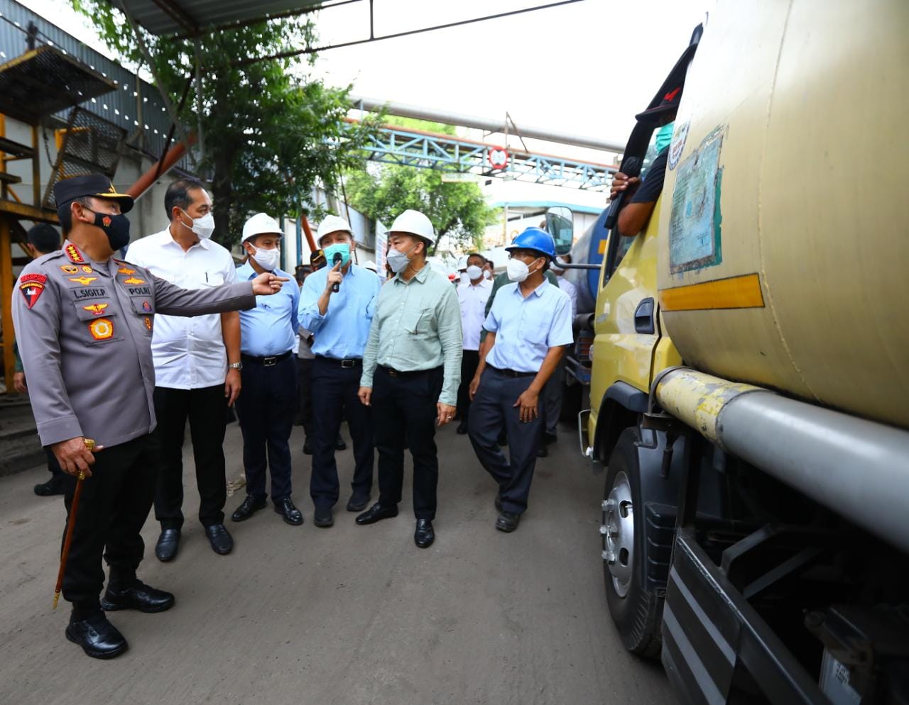 Setelah mengecek di Pasar Minggu, Jakarta Selatan, Kapolri kali ini meninjau pihak produsen di PT. Asianagro Agungjaya, Cilincing, Jakarta Utara. Dalam tinjauannya kali ini, Kapolri mengecek bersama dengan Menteri Perdagangan Muhammad Lutfi dan Menteri Perindustrian (Menperin) Agus Gumiwang Kartasasmita.