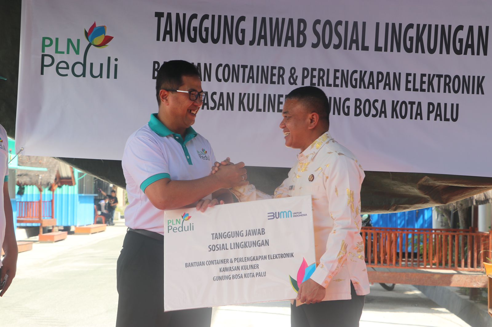 General Manager (GM) PLN Unit Induk Wilayah Sulawesi Utara, Sulawesi Tengah Dan Gorontalo (UIW Suluttenggo), J. A. Ari Dartomo secara langsung menyalurkan bantuan Tanggung Jawab Sosial Dan Lingkungan (TJSL) kepada sejumlah UMKM di bawah binaan Dinas Koperasi UMKM Dan Tenaga Kerja Kota Palu.