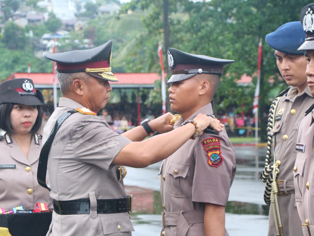 Lpkrinews.id – Manado – Di bawah guyuran hujan cukup deras, Kapolda Sulawesi Utara (Sulut) Irjen Pol Setyo Budiyanto melantik secara resmi 261 siswa Pendidikan Pembentukan Bintara (Diktukba) Polri Gelombang II T.A. 2022 Sekolah Polisi Negara (SPN) Polda Sulut, menjadi anggota Polri berpangkat Brigadir Polisi Dua (Bripda).