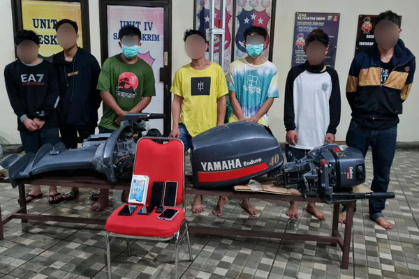 Lanjut Kombes Pol Jules Abraham Abast, para pelaku mencuri dua unit mesin motor tempel perahu merek Yamaha 15 pk dan 40 pk milik Roland Rumambi (44), warga Wori, Minahasa Utara.