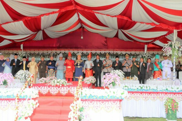 Lpkrinews.id — Kotamobagu – Kapolres Kotamobagu AKBP Dasveri Abdi bersama Ketua Bhayangkari Cabang Kotamobagu Ny. Ivona Dasveri menghadiri upacara perayaan Hari Ulang Tahun Kota Kotamobagu yang ke-16.