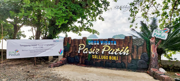 Melalui kegiatan Tanggung Jawab Sosial Perusahaan (TJSL) atau corporate social responsibility (CSR), PLN UP3 Kotamobagu menyalurkan bantuan senilai Rp200 juta untuk mengembangkan Desa Wisata Pantai Pasir Putih Sallugo Boki, Desa Pasir Putih, Kecamatan Sang Tombolang, Kabupaten Bolaang Mongondow.