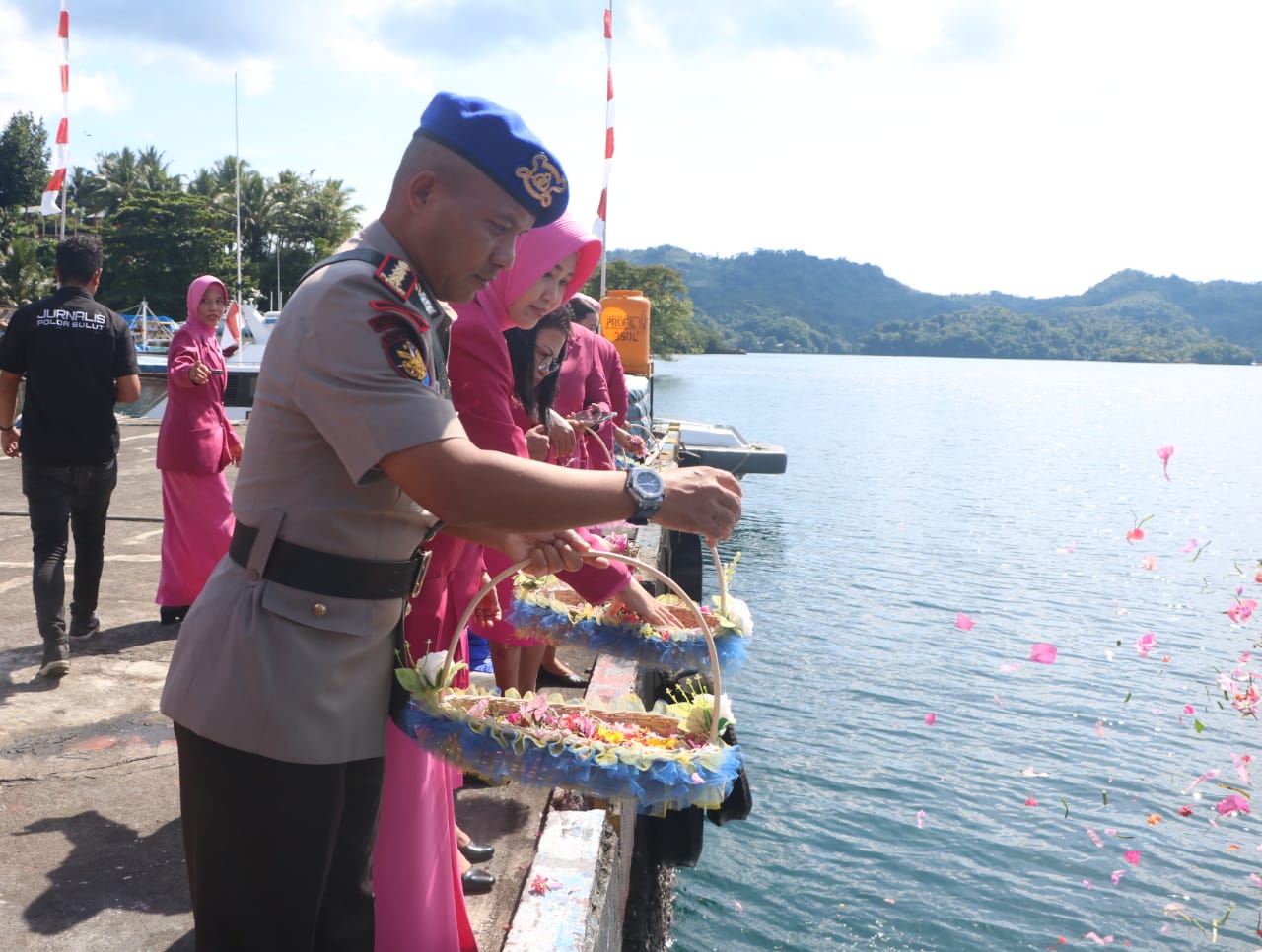 “Ada serangkaian kegiatan menyambut HUT Polairud tahun ini. Antara lain, anjangsana, bersih-bersih, donor darah, dan hari ini kita laksanakan upacara tabur bunga di laut,” ujar Kombes Pol Kukuh, usai upacara.