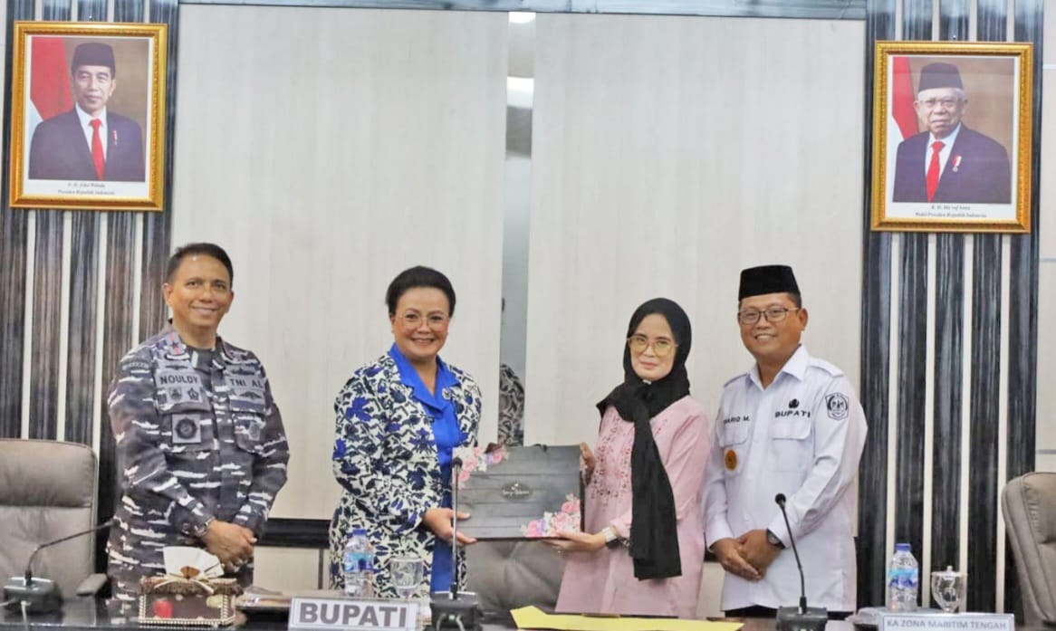 Sebelum melakukan pemantaun di lahan pembangunan Lanal Kwandang, Danlantamal VIII melakukan kunjungan ke Kantor Bupati Gorontalo Utara dan diterima Bupati Gorontalo Utara Thariq Modanggu, S.Ag., M.Pd.I., bersama Forkopimda Kabupaten Gorontalo Utara.