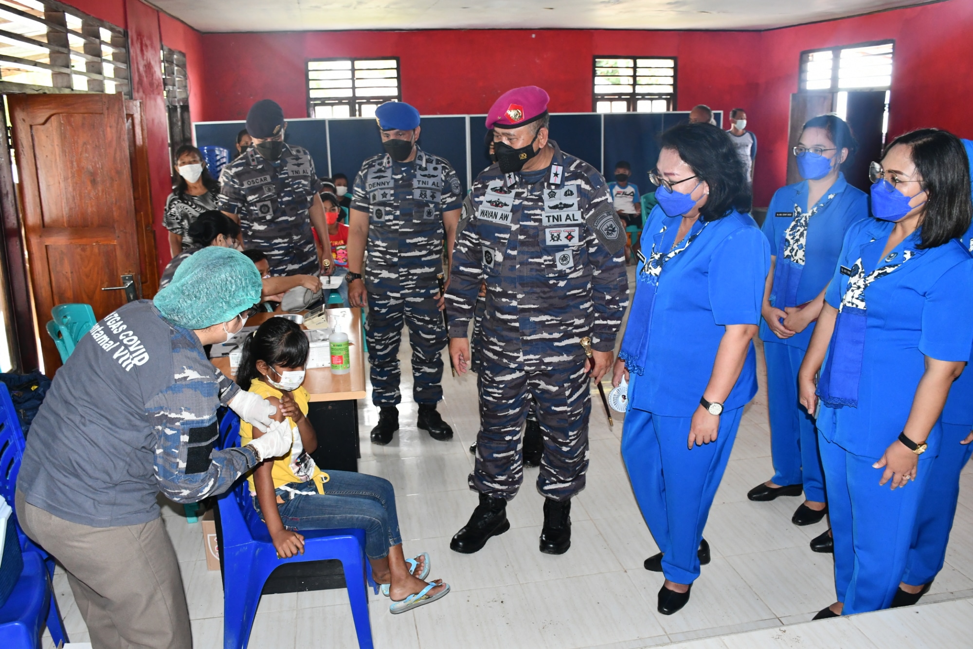 Komandan Pangkalan Utama TNI AL (Danlantamal) VIII Brigjen TNI (Mar) I Wayan Ariwijaya, S.E., CFrA., yang turut serta bersama Ketua Korcab VIII Daerah Jalasenastri Armada II Ny. Tirta I Wayan Ariwijaya, dalam pelaksanaan vaksinasi tersebut mengatakan bahwa serbuan vaksinasi maritim Covid-19 kali ini, dilaksanakan secara mobile di Pulau Bangka. “Dimana terdapat empat desa, yang pelaksanaannya tetap berkoordinasi dengan para Hukum Tua dan Pemerintah Daerah,” ujarnya