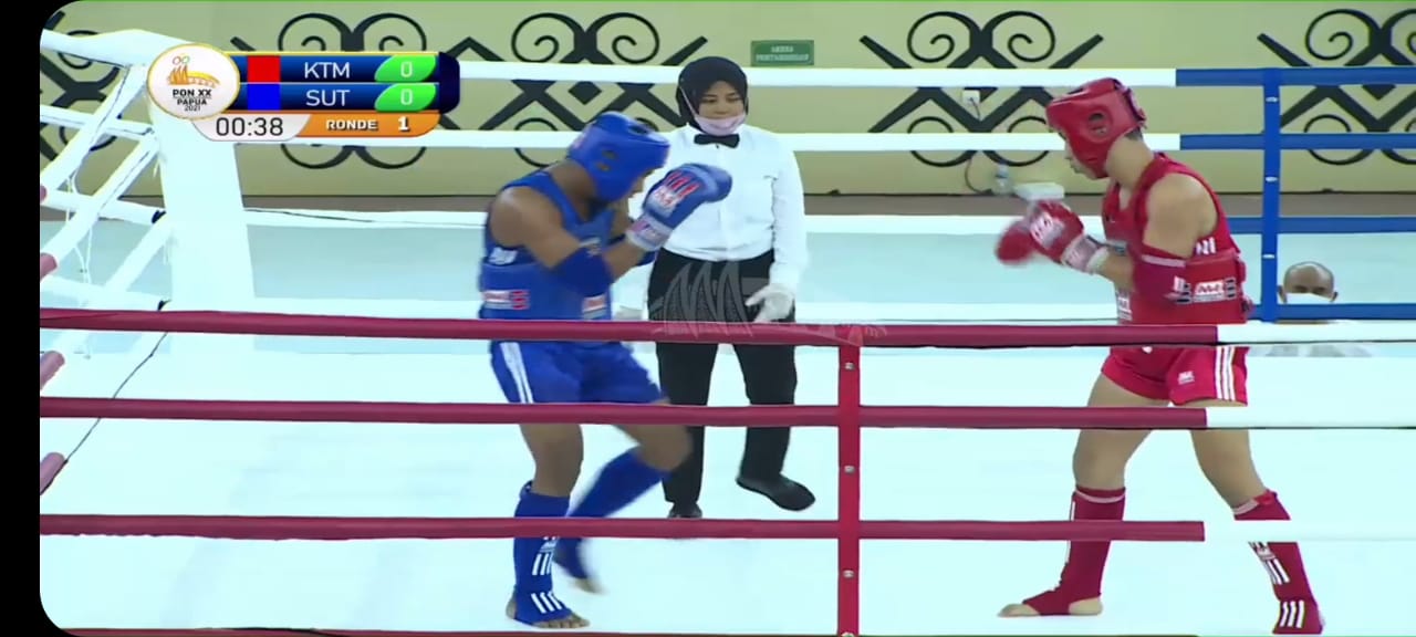 Selanjutnya satu lagi yaitu atlet putra Joven Tawaluyan lolos ke semifinal setelah mengalahkan atlet dari Kalimantan Timur pada pertarungan, Selasa (28/09/2021) sore di GOR STT GIDI, Kabupaten Jayapura, Provinsi Papua.