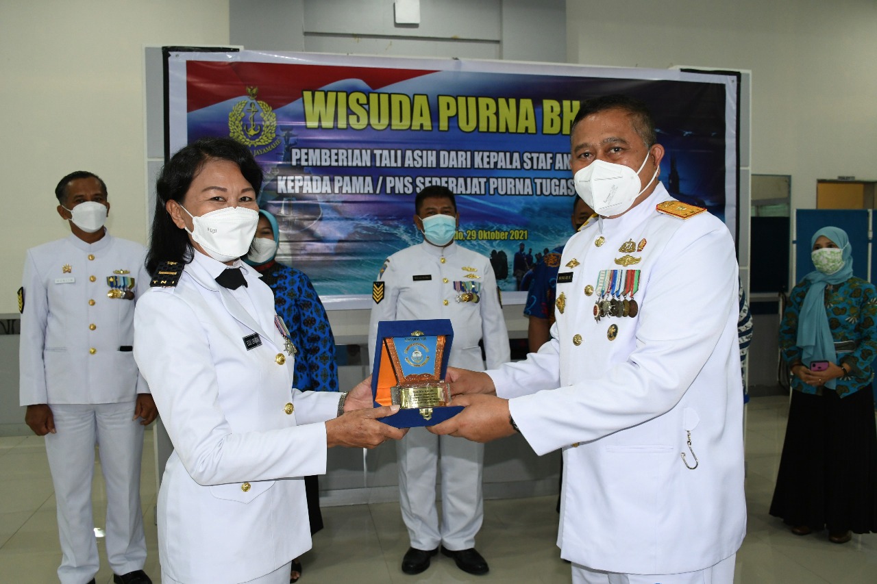 Usai menerima arahan, selanjutnya Danlantamal VIII secara simbolis menyerahkan tali asih dari Kepala Staf Angkatan Laut kepada personel Lantamal VIII yang memasuki masa purna tugas diantaranya Letda Laut (KH/W) Elsje, Serma Rum Joko Susilo, Serma Mes Muslim, Serka Kom Widjanarko dan Serda Kom Fathoni.