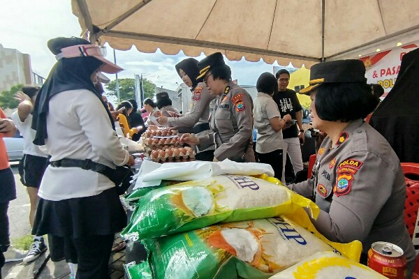 “Dalam rangka menyambut Hari Jadi ke-77, Polwan Polda Sulut bersama Perum Bulog SulutGo menggelar pasar murah. Beberapa produk yang dijual antara lain beras SPHP sebanyak 2 ton, bawang merah, bawang putih, ayam daging, telur, dan buah-buahan,” ujar AKBP Nonie.