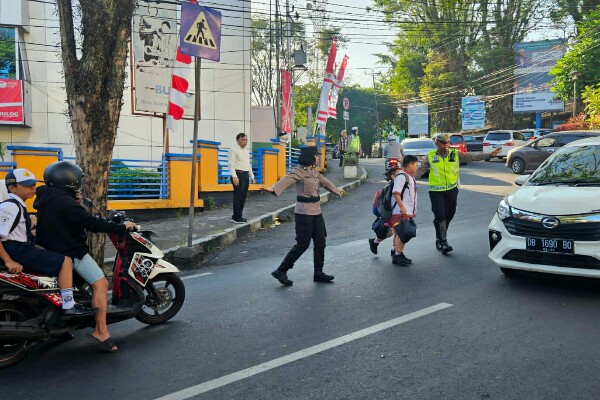Sejak Kamis (31/8/2023) pagi sekitar pukul 06.30 Wita, personel Polwan disebar di berbaga titik persimpangan dan keramaian serta sekolah untuk melakukan pengaturan lalu lintas.